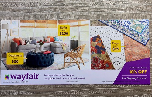 Wayfair Coupons | 50% Off In October 2022 | Forbes Wayfair promo code: 10% off your order + free shipping over $49 Enjoy an entire 10% off your order and free shipping when you spend over $49! Shop site-wide to enjoy this awesome offer....
