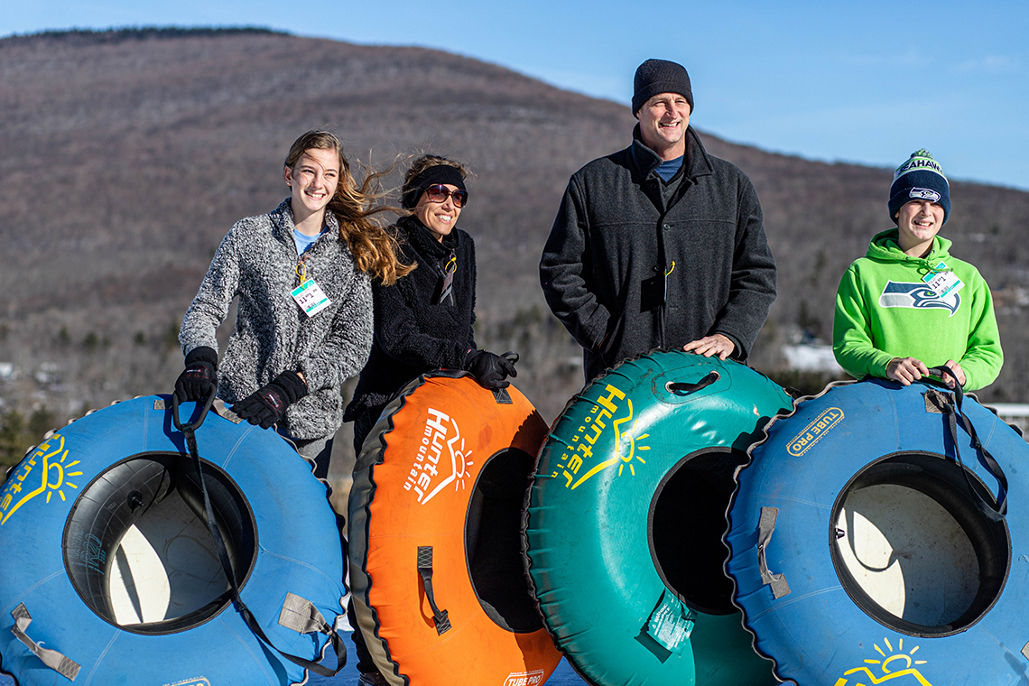 Snow Tubing | Hunter Mountain Resort Snow Tubing is CLOSED. Hunter Mountain's tubing hill, at nearly 1000 feet long, is a “no-skills” fun activity for the whole family.
